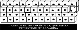 Se puede identificar la diferencia que existe entre las células epiteliales del recto, que tiene una capa, y las células epiteliales de la vagina que tienen varias capas y por ello se denomina estratificado.
